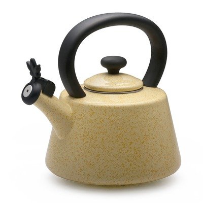 Product Features Paula Deen Signature Teakettles 2-Quart Enamel on Steel Whistling Kettle, Butter Speckle